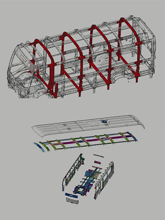全新設計高剛性、高強度、骨架結構車體,採用高張力鋼板及高強度雷射焊接,符合歐盟大客車車身結構強度基準(R66),大幅減少撞擊時車體變形,有效防護乘員安全。