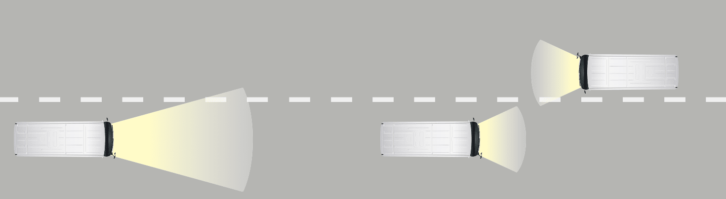 偵測對向車輛頭燈及前方車輛尾燈光源,自動切換遠光燈,避免來車受到燈頭直射。