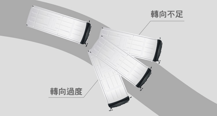 當車輛遠離路面、轉向過度或不足時,VSC將調整動力輸出,主動掌握行車安全。