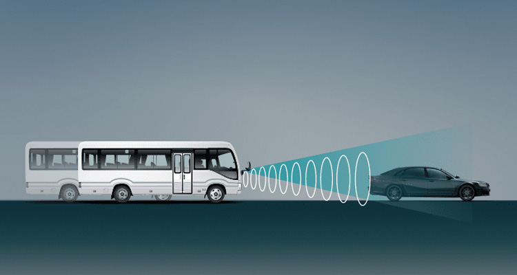 由車前方毫米波雷達及智能攝影機偵測前方行人或車輛,若系統判斷有碰撞危險時,將發出警報及支援煞車系統控制,降低碰撞車禍的傷害。