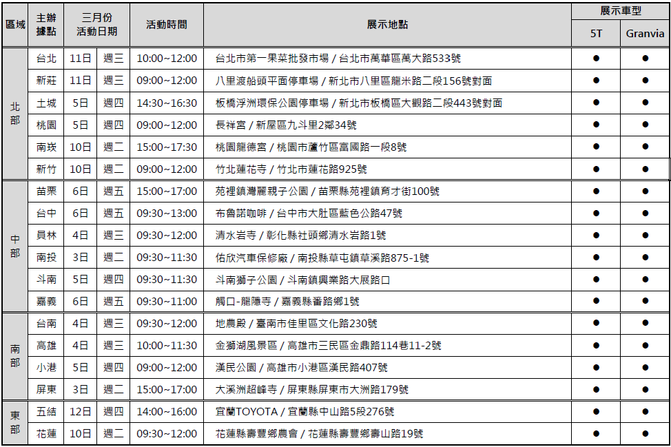 2026年3月份TOYOTA商旅車試乘EVENT場次表
