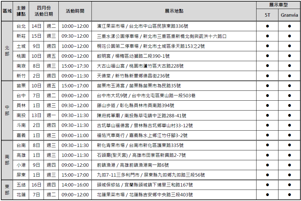 2026年4月份TOYOTA商旅車試乘EVENT場次表