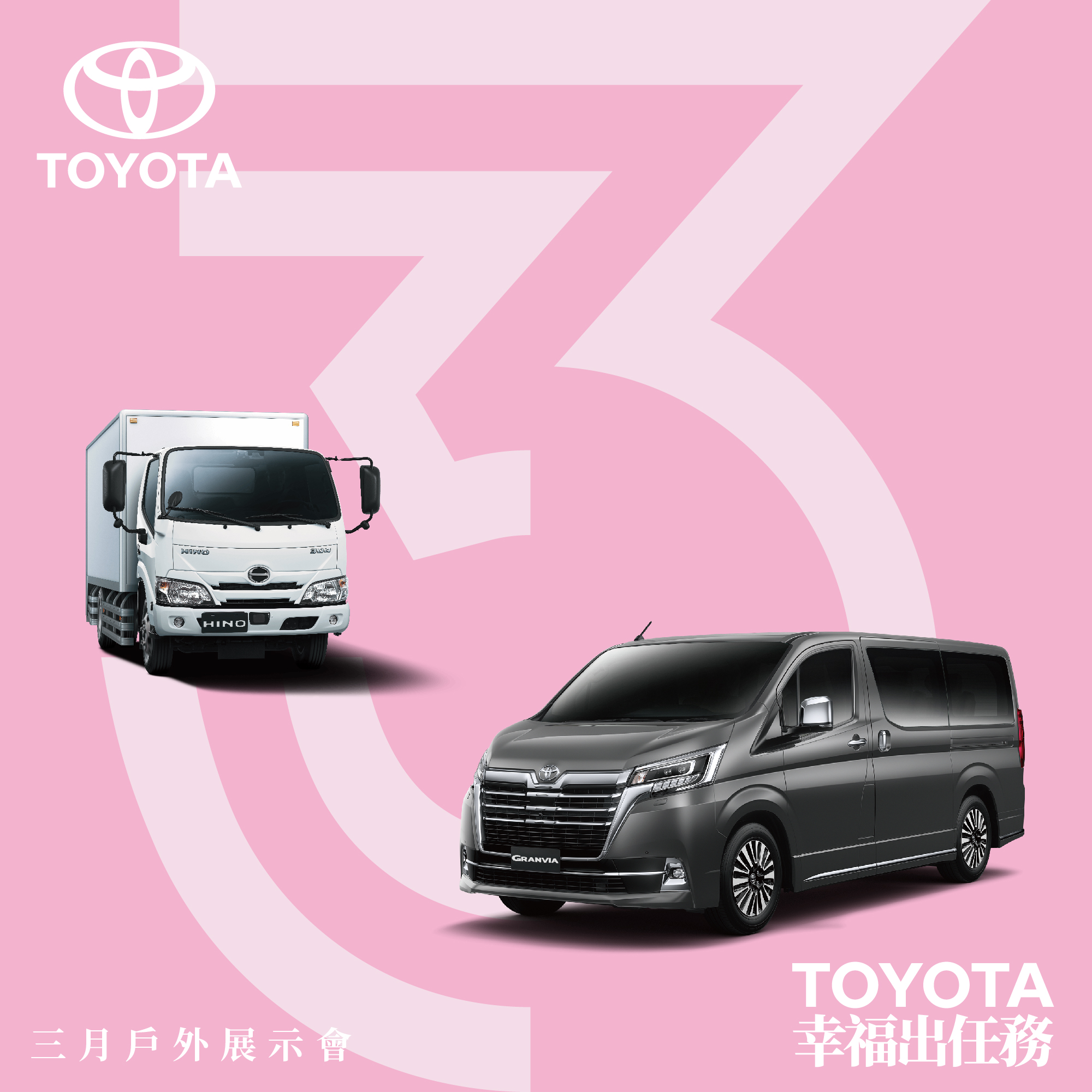 TOYOTA Granvia、HINO 5噸戶外微展車全台同步實施中,歡迎各地貴賓蒞臨鑑賞。