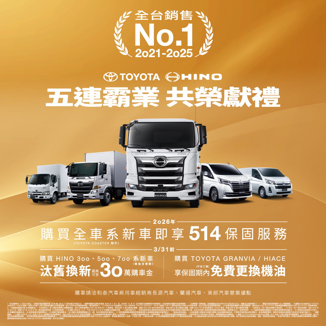 和泰商用車蟬聯銷售冠軍,推出「五連霸業 共榮獻禮」感恩回饋